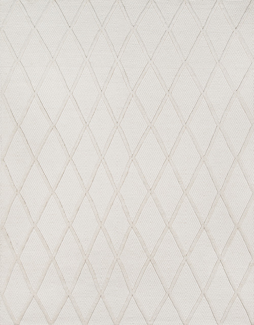 Hand Woven of 100% Wool Instill interior floors with a sense of comfortable calm in this collection that conveys a hip hygge aesthetic. Hand woven from natural wool fibers, optical, diamond and swiss dot patterns fill the geometric field of each carpet in subdued shades of sky blue, baby pink and beige. A pastel color palette and plush fibers make each accent rug the perfect floor covering for rooms seeking a soft sensibility.