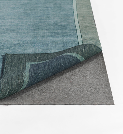 Premium cushioned, high performance non-slip pad with recycled needle-punched fiber. Textured rubber backing for improved gripping power on hard surface or carpeted floors. Easily trimmed to fit custom area rug sizes. Made in USA.